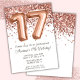 You can pick to download your Rose Gold 17th Birthday Party Invitation from 4 file types: PNG, JPG, Standard PDF, and Print PDF. These 4 file formats have been selected so they cover all your inviting needs. PNG and JPG are great for sending your invitation digitally and PDF and Print PDF are great if you want to print your invitation yourself.