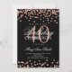 Rose Gold 40th Birthday Glitter Confetti Black Invitation