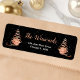 This elegant and chic return address label features a rose gold ribbon Christmas tree with a present. The text combines handwritten script and modern sans serif fonts for a classy and sophisticated look. The falling snow, snowflakes and sparkles give a festive and magical touch. This is perfect for Christmas and the holiday season.
