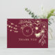 Elegant, rustic, vintage, boho burgundy wedding thank you card with monogram, gilded gold floral lace, string lights and custom text-template back. In a combination with the wax seal sticker from the same collection, it is able to create stronger reflect of couple's personality, love story and uniqueness.