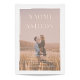 A modern photo wedding invitation with a white paint brush style border and traditional elegant typography.