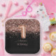 Rose gold black 1st birthday party paper plates to decorate the birthday party tables.