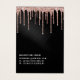 This girly and glamorous earring display card is the perfect way to stylize your packaging and add your own personal flair and personality. It depicts chic, pretty, unique, and luxurious faux printed sparkly rose gold glitter drips on top of a black brushed metallic background. The typography is an elegant cursive script with a modern serif font to match. On the back, it includes contact information that can be changed completely or personalized to your details. It's a professional, elegant, and stylish way to display your product with pride. (earring holes are printed markers only, puncturing must be completed by the customer)