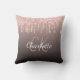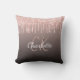Rose gold black glitter drips monogram name throw pillow
