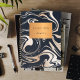 Rose gold black marble with copper label school notebook