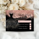 Complete your quinceañera stationery suite with this Black Princess Dress Quinceañera RSVP Card, designed to perfectly complement a glamorous and modern celebration. Featuring an elegant black princess dress silhouette, sparkling rose gold glitter accents, and a chic rose gold alcohol ink background, this reply card adds a luxurious finishing touch to your event details.