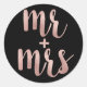 Rose gold & black stickers, Mr & Mrs, foil font Classic Round Sticker