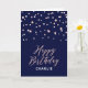 Rose Gold & Blue Happy Birthday Name Greeting Card