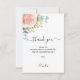 A white background, decorated a rose gold, blush watercolored rose, flower and eucalyptus greenery. Large hand lettered script with swashes and the text: Thank You. Personalize and add your thank you note and name.