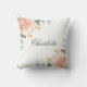 A chic white background decorated with rose gold, blush flowers roses and eucalyptus greenery. Personalize and add a name. The name is written with a modern hand lettered style script. Green text.