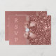 Elegant, personalized custom rose gold RSVP cards with beautiful glitter, shiny printed bows and ribbons with pretty diamonds bling jewels on a glamorous rose gold textured gradient background with blush pink text. PLEASE NOTE: These are flat printed graphics - no raised parts.If you need assistance customizing your product please contact me through my store. I will be happy to help. I have matching products in my store.