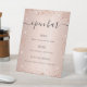 Rose gold blush glitter sparkles script bar menu pedestal sign
