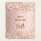 A faux rose gold metallic looking background with confetti. Personalize and add a name. The name is written in dark rose gold with a large modern hand lettered script, signature style. Perfect for school, work or organizing your personal/family life.