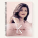 A rose gold, pink background. Personalize and add your own photo, a name, monogram letter and a year. The name is written in burgundy with a large modern hand lettered style script with swashes. The monogram letter in white. Perfect for school, work, as a diary and journaling. To keep the swashes only delete the sample name, leave the spaces or emoji's in front and after the name