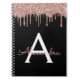 Rose Gold - Blush Pink Black Glitter Monogram Name Notebook