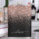 Rose Gold - Blush Pink and Black Sparkle Glitter Brushed Metal Monogram Name and Initial Party Flask. This makes the perfect sweet 16 birthday, wedding, bridal shower, anniversary, baby shower or bachelorette party gift for someone that loves glam luxury and chic styles.