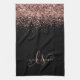 Glam Rose Gold Glitter Elegant Monogram Kitchen Towels. Easily personalize this trendy chic kitchen towels design featuring elegant rose gold sparkling glitter on a black background. The design features your handwritten script monogram with pretty swirls and your name.