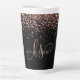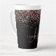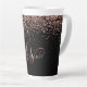 Glam Rose Gold Glitter Elegant Monogram Latte Mug. Easily personalize this trendy chic latte mug design featuring elegant rose gold sparkling glitter on a black background. The design features your handwritten script monogram with pretty swirls and your name.