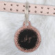 Glam Rose Gold Glitter Elegant Monogram Pet ID Tag. Easily personalize this trendy chic pet id tag design featuring elegant rose gold sparkling glitter on a black background. The design features your handwritten script monogram with pretty swirls and your name.