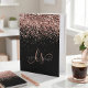 Glam Rose Gold Glitter Elegant Monogram Pocket Folder. Easily personalize this trendy chic pocket folder design featuring elegant rose gold sparkling glitter on a black background. The design features your handwritten script monogram with pretty swirls and your name.
