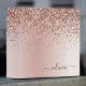 Rose Gold - Blush Pink Glitter Metal Monogram Name 3 Ring Binder