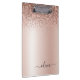 Rose Gold - Blush Pink Glitter Metal Monogram Name Clipboard