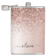 Rose Gold - Blush Pink Glitter Metal Monogram Name Flask