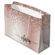 Rose Gold - Blush Pink Glitter Metal Monogram Name Large Gift Bag