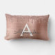 Rose Gold - Blush Pink Glitter Metal Monogram Name Lumbar Pillow