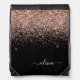 Rose Gold Blush Pink Glitter Script Monogram Name Drawstring Bag