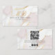 Chic Rose Gold Blush Pink Marble Monogram QR Code Business Card