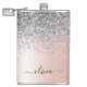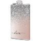 Rose Gold - Blush Pink Silver Glitter Monogram Flask