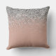 Rose Gold Blush Pink Silver Glitter Monogram Throw Pillow