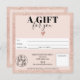 Modern pastel blush pink simple square gift certificate with rose gold glitter , add your logo, with a rose gold heart. Perfect birthday or Christmas gift certificate voucher.