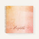 A coral, rose gold, pink rustic marble background. Personalize and add your name. The name is written with a modern hand lettered style script. Dark coral colored letters. To keep the swashes only delete the sample name, leave the spaces or emoji's in front and after the name. A college ruled notebook for school or as a your secret diary.