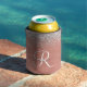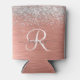Rose Gold Brushed Metal Glitter Monogram Name Can Cooler