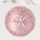 Rose Gold Brushed Metal Glitter Monogram Name Clas Classic Round Sticker