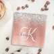 Rose Gold Brushed Metal Glitter Monogram Name Glass Coaster