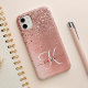 Rose Gold Brushed Metal Glitter Monogram Name iPhone 15 Case