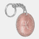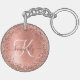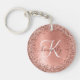 Rose Gold Brushed Metal Glitter Monogram Name Keychain