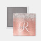 Rose Gold Brushed Metal Glitter Monogram Name Magnet