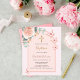 A blush pink background with a rose gold arch. Decorated with a rose gold and blush pink floral, rose flower, green watercolored eucalyptus greenery and butterflies. Personalize and add a name and details.