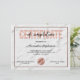 Elegant, classy marble and rose gold effect block lettering with script certificate of completion. Convenient letter size 8.5"x11" certificate of completion to award students, employees or anyone for completing a course, school, training or education program. Add your logo or use the faux rose gold seal image. Great for any career field or job industry use... cosmetology school graduation, hair salon training, aesthetician, skincare, lashes brows, makeup artist or any field of study. Custom design in beautiful white and gray marble print background with gold frames. Reward the efforts of your students and staff with this customizable, personalized certificate. Customize your own text online, and order certificates custom made for your graduation or awards ceremony. Leave the signature area blank to add a signature later, or type your name and title, and still add your signature above. Honoree's name can be typed in or the blank line can be left to add hand-written or printed names later.