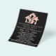 Modern business flyer designed for a commercial or residential services for cleaning, housekeeper, maid service, or janitorial supplies. Design featuring of rose gold house and cleaning equipment inside, name and text line on the front. Customize the back with your full contact details and social media details.
