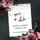 Here's a festive choice for your wedding planning needs. Over an editable background, I've placed a typography graphic that reads "save the date" featuring an elaborate script font embellished with hearts. Behind this header, faux metallic rose gold glitter confetti seems to fall from above. Use the template fields to add your own details and click to customize further if you'd like to make any additional modifications. All layers are unlocked to allow for all the positioning and sizing control you desire.
