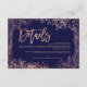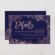 Rose Gold typography on customizable navy blue rose gold floral With elegant hand drawn flower wreath and abstract chic confetti chic wedding directions and details , perfect for elegant wedding,