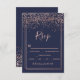 Rose gold confetti navy blue typography rsvp wedding party invitation with double rose gold geometric border .Perfect for a modern elegant wedding party.