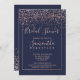 Rose gold confetti navy blue script bridal shower invitation