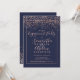 Rose gold confetti navy blue typography engagement invitation