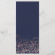 Rose gold confetti navy blue typography wedding dinner menu. A modern, pretty faux rose gold glitter shower ombre with pastel blush pink block. Perfect for glamour, chic and elegant wedding theme. The pink background is fully customizable